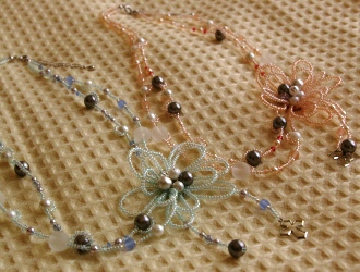 No.43***コサージュネックレス 2色 各2730円 クロスサイズ 15mm×18mm 長さ*46cm(アジャスター付) ただいま、オアシスブックセンターにてお取り扱い中です。 |