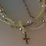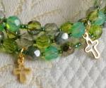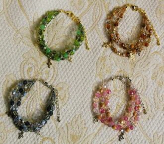 チェコの3連ブレスレット 4色 各1470円 長さ*16cm(アジャスター付) 同系色のチェコビーズをランダムに並べて ボリュームのある3連ブレスにしました。 小さいクロスが3個揺れています。 (お揃いのリングへ) |