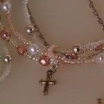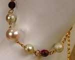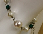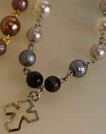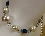 6ミリのパール2種類と天然石、8ミリのパールが、 リズミカルに並んでいます。 (お揃いのネックレスへ) |