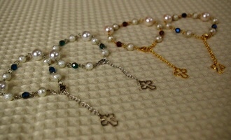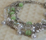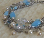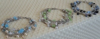 マルチチェーンのブレスレット 3色 各1260円 長さ*17cm(アジャスター付) シルバーベースのチェーンに さわやかなパール調のビーズをちりばめました。 新宿「オアシスブックセンター」にてお取り扱い中です |
