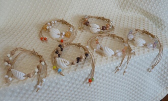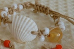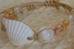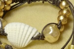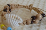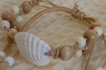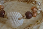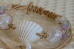 白い貝殻をセンターに配置し、 蝋引きコードでビーズをつなげました。 お好きな長さに調節可能で、アンクレットにもなります。 |