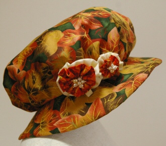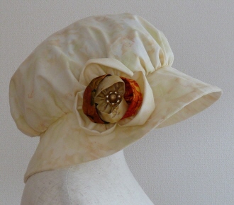パッチワークのモチーフ、リトルスーみたいな帽子。 ふんわり感が小顔に見せます。 |
